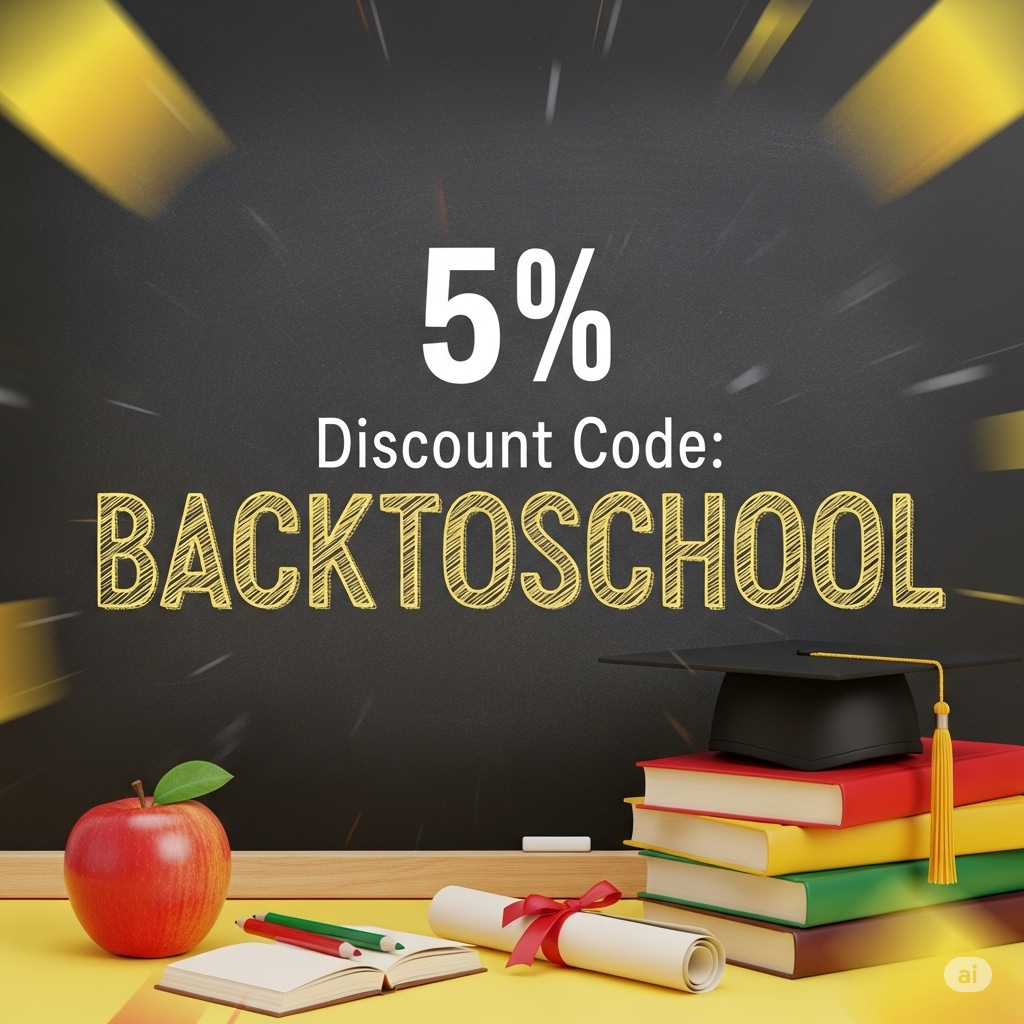 BACKTOSCHOOL coupon code 5% off all products, can be combined with automatic 50% discount